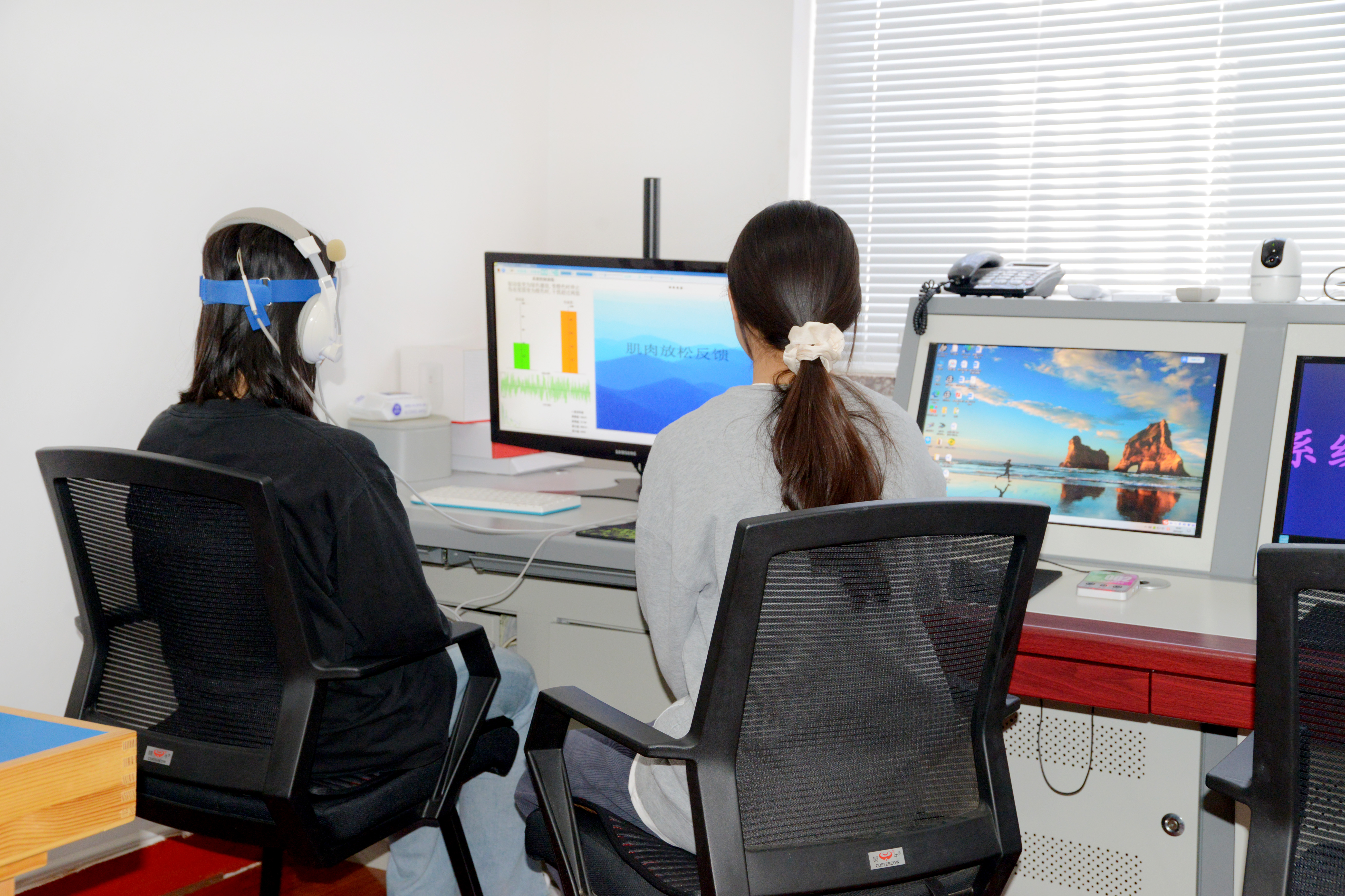 咨詢(xún)師在進(jìn)行生物反饋訓(xùn)練